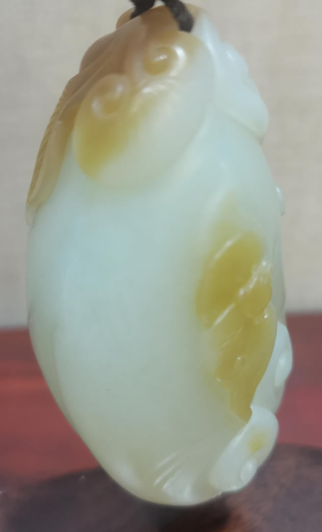 玉质熟糯温润,细腻致密,雕刻技法娴熟,籽料毛孔可见,工料俱佳,十分难得。构思巧妙,温润中透出古典之气,把玩、收藏、传世之极品。