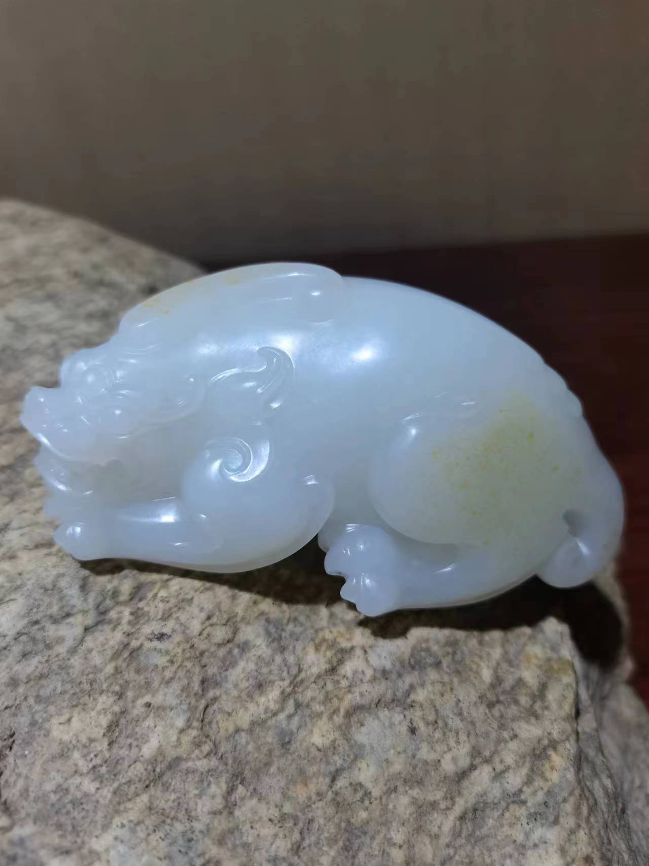 和田玉以五色为贵:白如截肪,黄如蒸栗,黑如点漆,红如鸡冠,青碧一色,此件把件正是“白如截肪”的羊脂白玉。